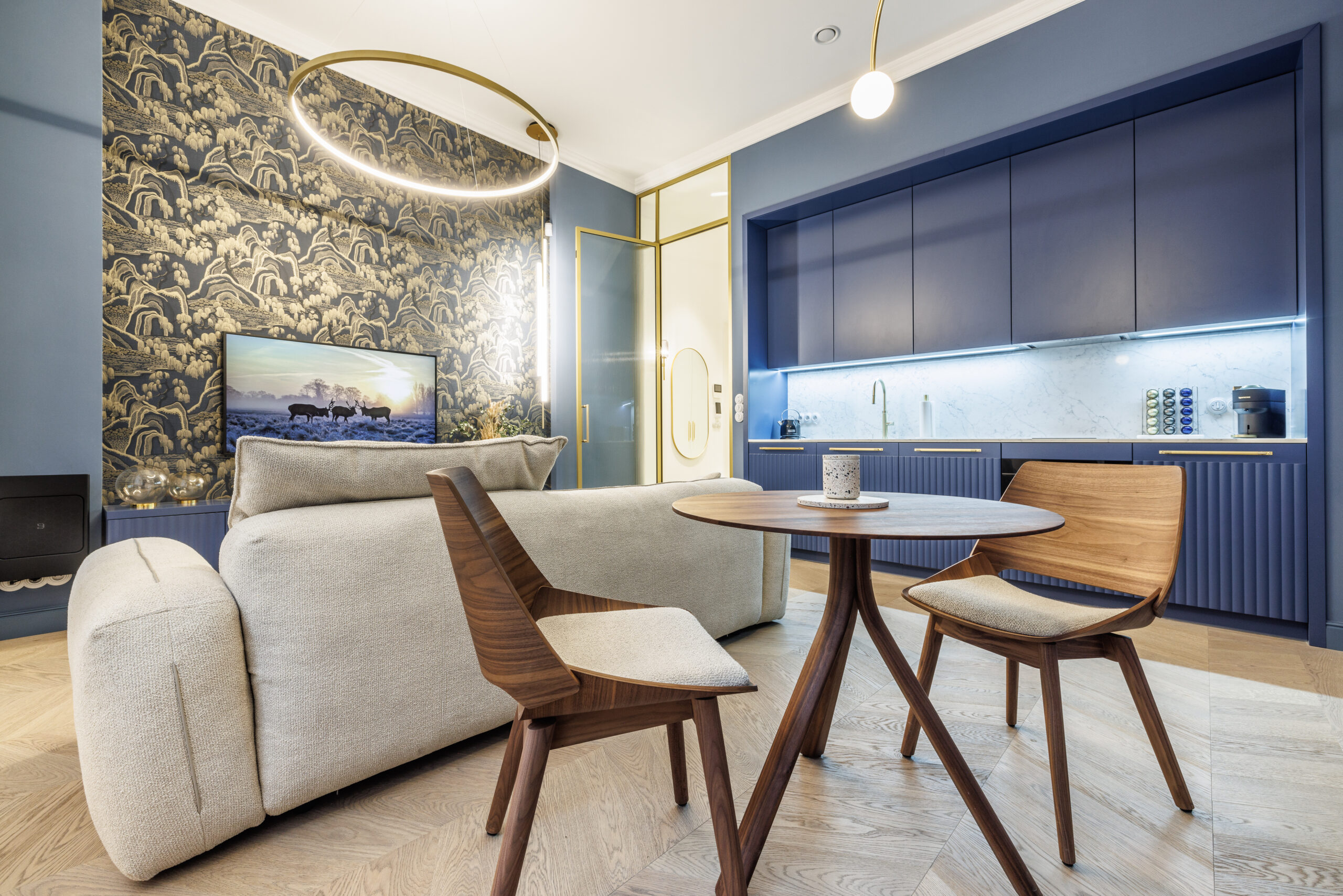 Vzorový byt v Paláci Dlouhá je ukázkou, jak lze tyto dva světy harmonicky propojit. Každý detail byl promyšlen tak, aby respektoval historický charakter budovy a zároveň vyhovoval nárokům moderního životního stylu. Do prostoru jsme vnesli nábytek značky Rolf Benz, který svou kvalitou, precizním zpracováním a nadčasovým stylem dokonale doplnil atmosféru bytu.